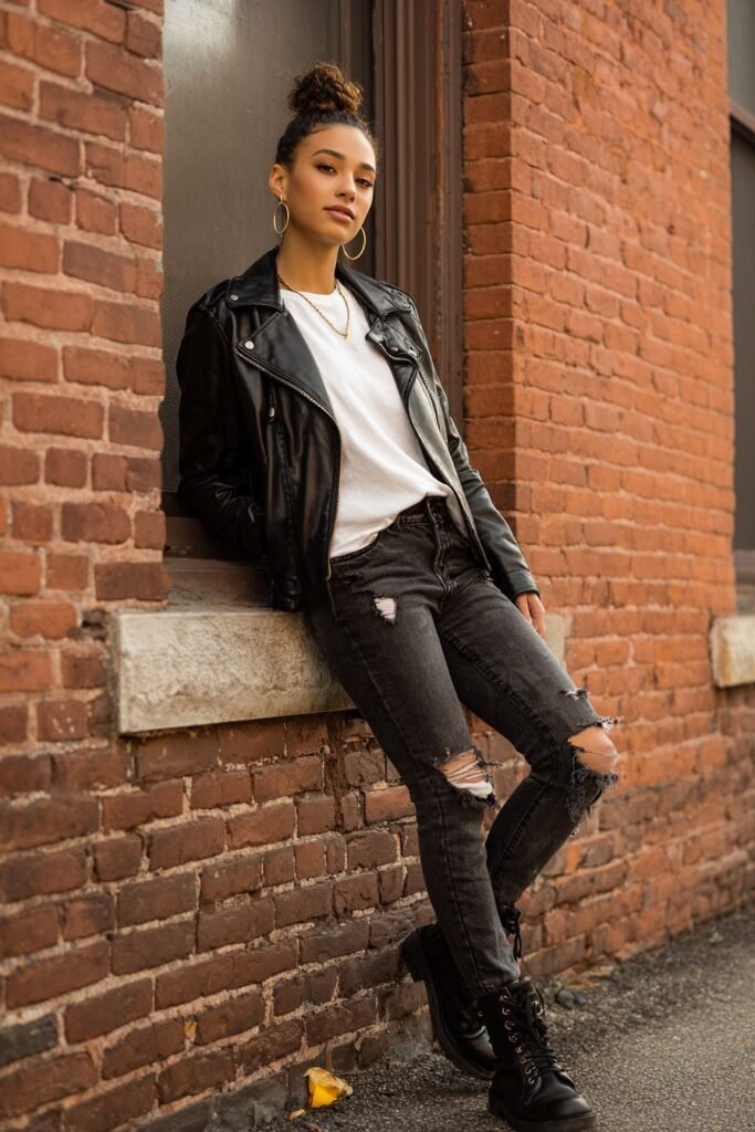 A leather jacket in fall is the epitome of cool. It effortlessly balances edgy and refined, making it a must-have for every wardrobe.