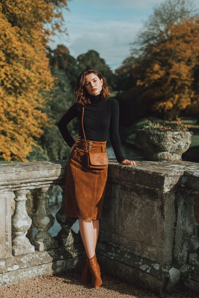 Pro Tip: Opt for midi skirts in fall fabrics like suede, leather, or wool for added warmth.