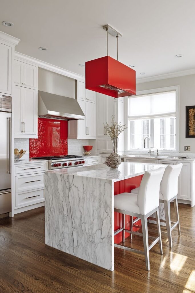 - Barstools with red upholstery or cushions for a bold, vibrant pop.